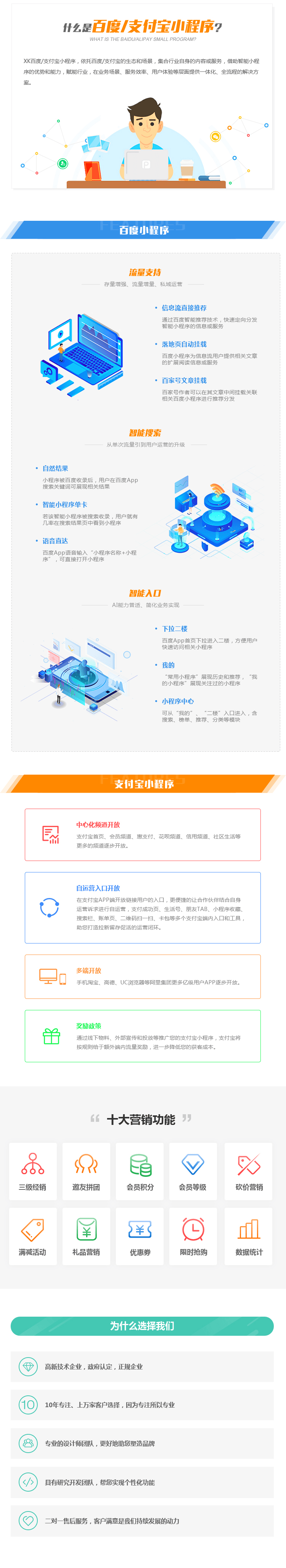 XK百度/支付宝小程序,依托百度/支付宝的生态和场景,集合行业自身的内容或服务,借助智能小程序的优势和能力,赋能行业,在业务场景、服务效率、用户体验等层面提供一体化、全流程的解决方案。